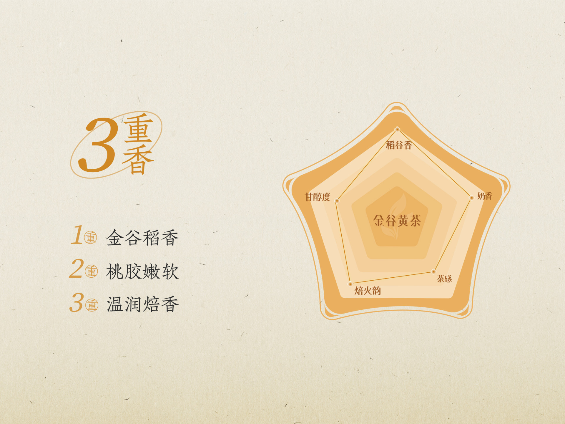 一重金谷稻香,二重桃胶嫩软,三重温润焙香